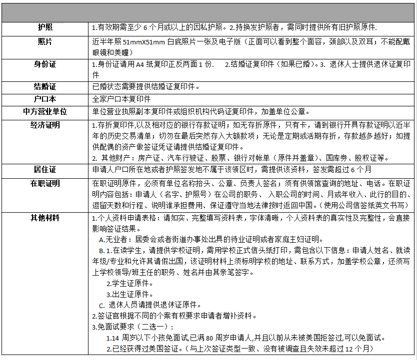 美國旅游簽證所需材料