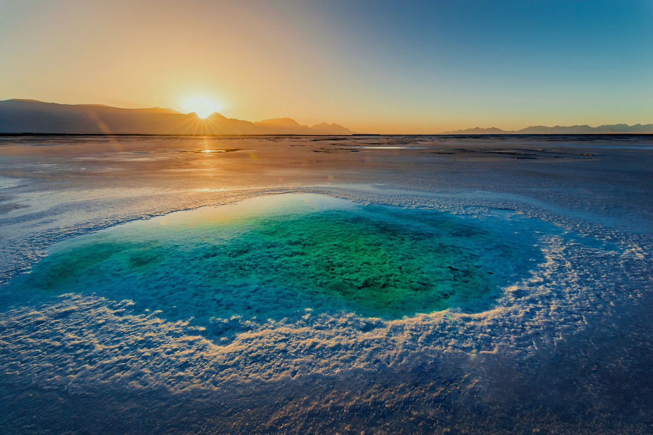 【東臺吉乃爾湖】(游覽時長約 0.5H)一個短時間風靡全國的網紅景點,雖然是高原鹽水湖,但它的湖 水卻像大海一般,充斥在瞳孔中的藍,更接近于翠綠色,是如同代表著幸福與浪漫的蒂芙尼寶石的高貴色澤。柔軟而潔白的湖灘是鹽的結晶,像是融化的奶酪般細膩,被很多人稱其為中國大西北的馬爾代夫。