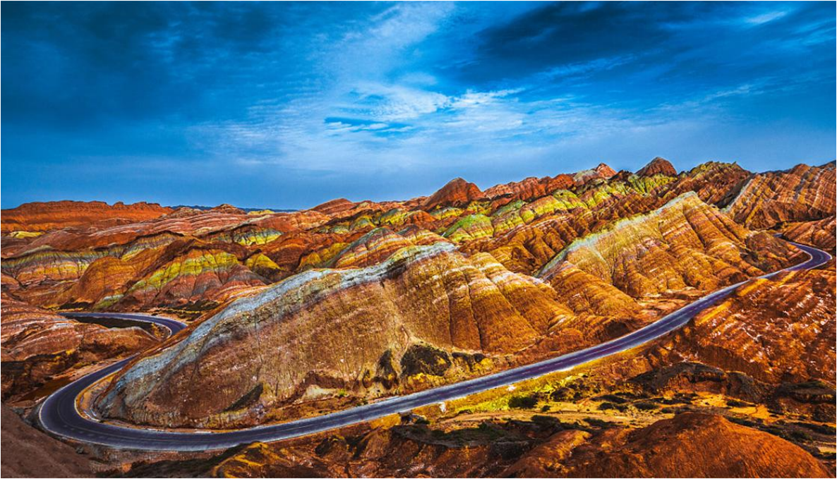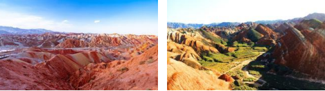 張掖丹霞主要由紅色礫石、砂巖和泥巖組成,游客在景區(qū)內能看到數(shù)以千計的懸崖、山巒呈現(xiàn)出鮮艷的丹紅色和紅褐色,特別是在陽