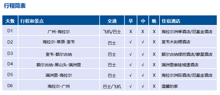 溫馨提示:呼倫貝爾地區(qū)為旅游初級城市,基礎設施不是很完善,酒店相對標準較低,行程中所標明的星級標準為當?shù)匦袠I(yè)參考標準,任何非官方網站所公布的酒店星級檔次,是屬于該網站自己的評估標準,不代表該酒店的真實檔次或星級,請各位貴賓做好心里準備。