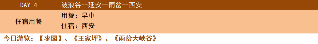 早餐后后乘車赴延安,后參觀七大會議舊址【棗園】(約30分鐘),后游覽舊址【王家坪】(約30分鐘)。后前往后乘車赴甘泉,參觀-【雨岔大峽谷】(游覽時間約2-3H),幾億萬年前,陜北發(fā)生過強(qiáng)烈的地震,其一座黃土大山分開一條大裂縫,又經(jīng)過幾百年雨水沖刷,慢慢的形成這樣一個峽谷,這也是我們今天看到的甘泉峽谷,都說與美國的羚羊大峽谷極其相似。后乘車前往西安。