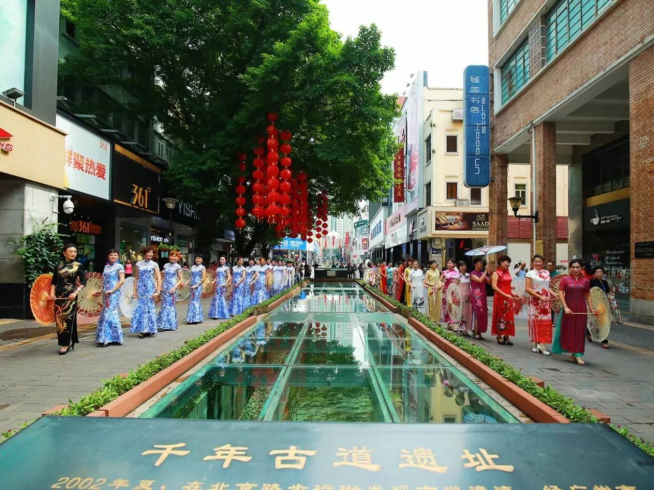 此外,整條街道的“鎮街之寶”莫過于安靜的躺在鋼化玻璃罩下的千年古道遺址。這也無疑為這條集古典氛圍與商業中心于一身的北京路再添一抹亮色。